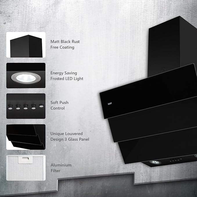 Kaff JIFF 60 | Unique louvered design | Full Black Tempered Glass | Frosted LED Light (Black)